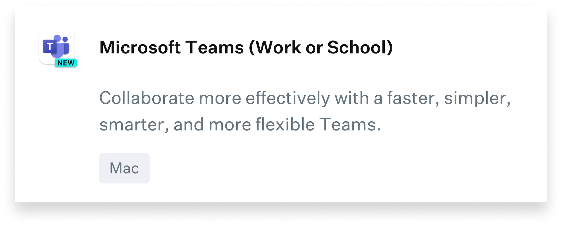 A new Auto App, Microsoft Teams (Work or School), has been added to the catalog and is now available for all customers.