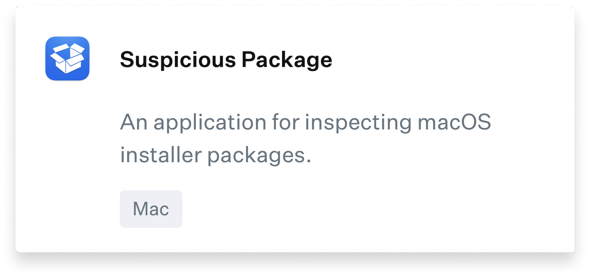 A new Auto App, Suspicious Package, has been added to the catalog and is now available for all customers.