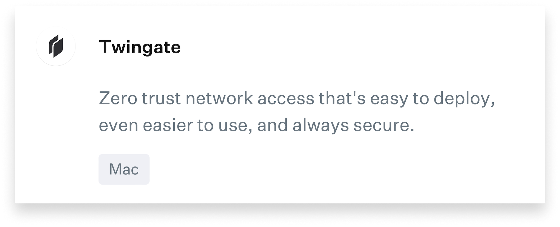 A new Auto App, Twingate, has been added to the catalog and is now available for all customers.