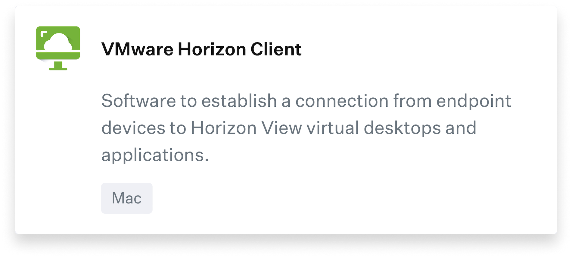 A new Auto App, VMware Horizon Client, has been added to the catalog and is now available for all customers.