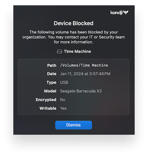 Also, as part of this Agent update, user prompts for the App Blocking Parameter and the Accessory and Storage Access Library Item have been updated to conform with the design of the EDR quarantine notification.
